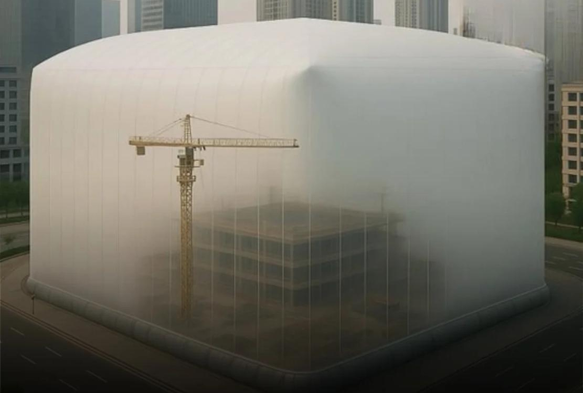 Traditionally, construction sites in dense urban areas have generated two major externalities: airborne particulate pollution and excessive noise levels. These effects become particularly problematic in mixed-use neighborhoods where commercial activity, tourism, pedestrian mobility, and residential life coexist within the same streetscape. In many central districts, prolonged exposure to dust emissions and continuous construction noise has resulted in complaints from citizens, economic losses for retail businesses, and growing pressure on municipal authorities to adopt new mitigation strategies. It is precisely in response to this urban challenge that China has begun to implement one of the most innovative construction management solutions currently being tested at scale: giant inflatable domes or sealed membrane enclosures that completely encapsulate construction sites.